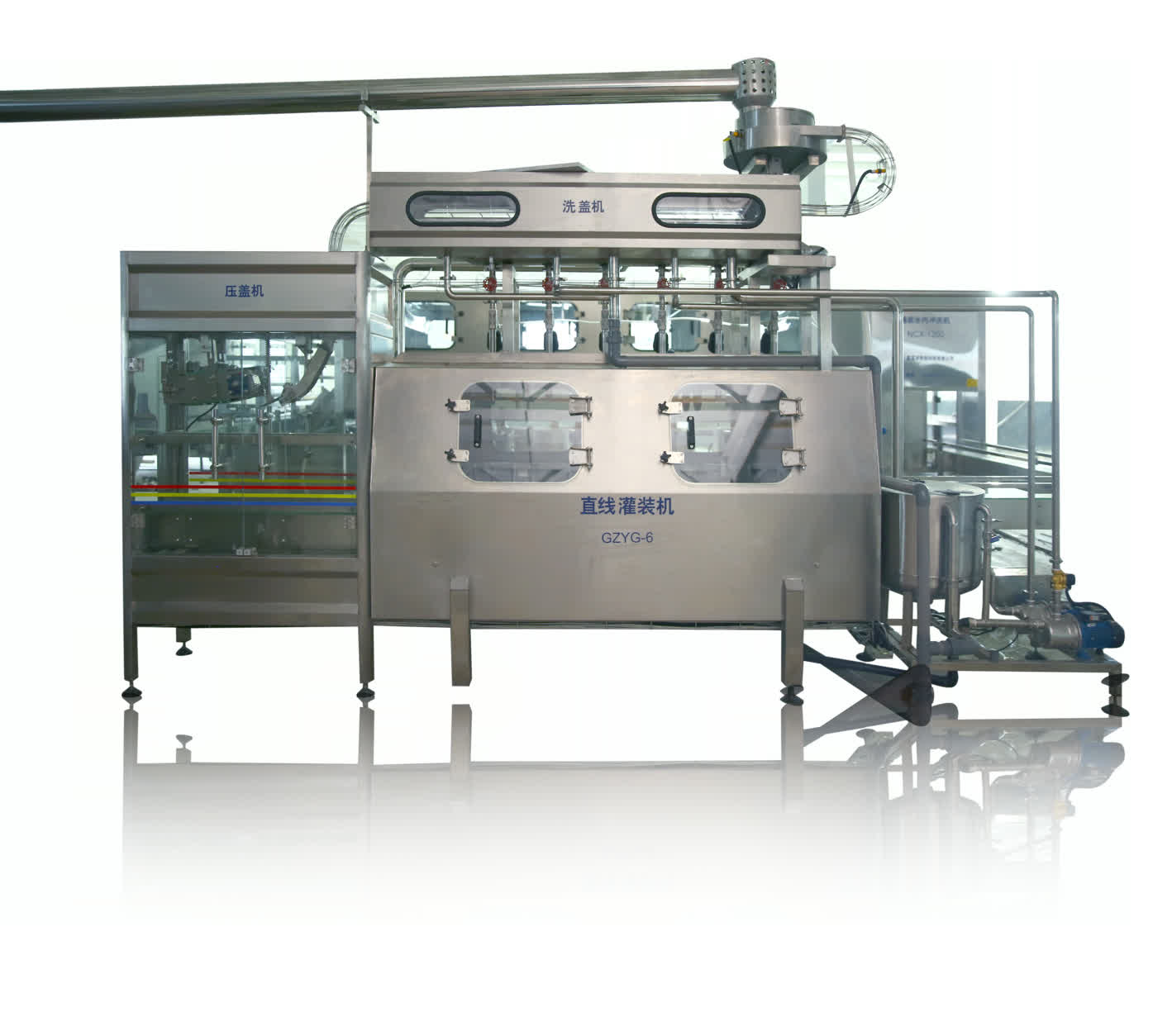 此灌裝設(shè)備集洗瓶、灌裝、套蓋、壓蓋于一體,采用多工位洗瓶設(shè)計(jì);使用單獨(dú)的理蓋和壓蓋裝置,各工位動(dòng)作準(zhǔn)確,使洗瓶、灌裝速度高效順暢;直線型設(shè)計(jì),結(jié)構(gòu)緊湊,安裝簡(jiǎn)單,操作方便;全過程在密閉通道中進(jìn)行生產(chǎn),有效防止污染,確保所產(chǎn)水質(zhì)的無(wú)菌、純凈;適用于各種場(chǎng)所。